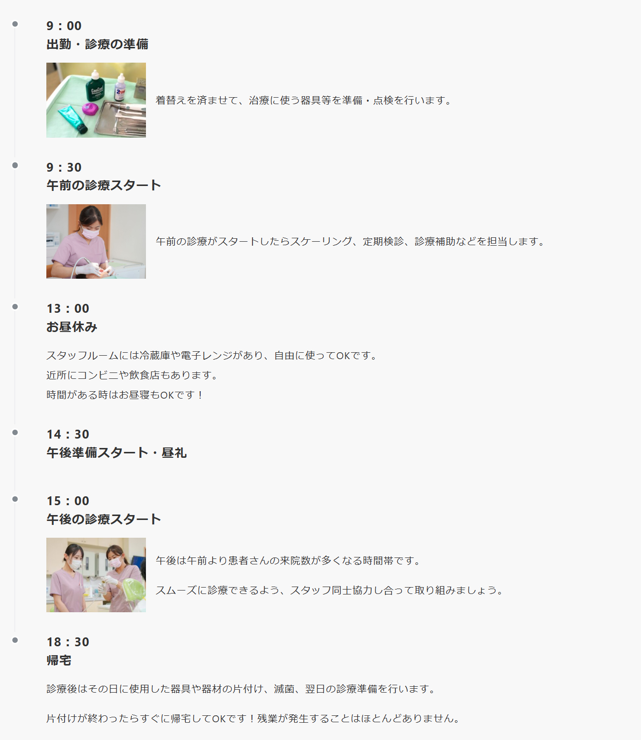 歯科衛生士業務全般をお願いします。 ※受付業務は専任スタッフがいるためありません。